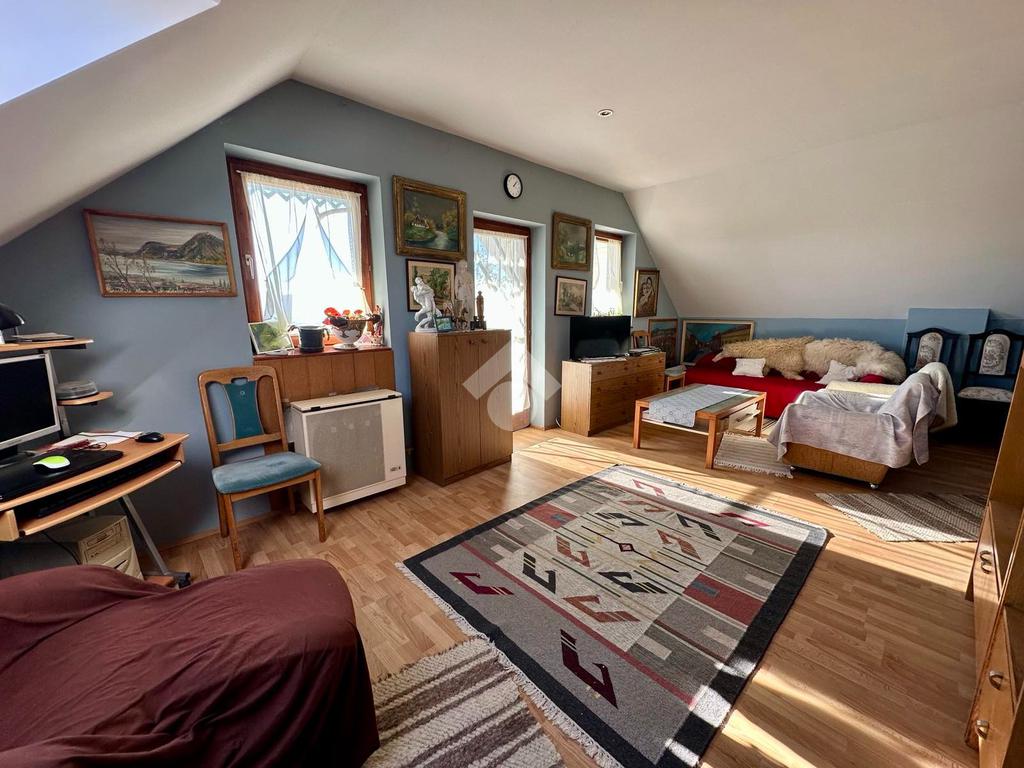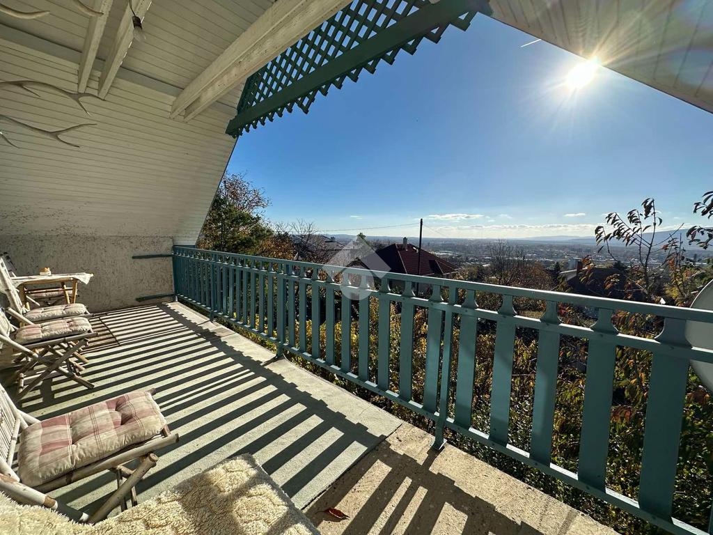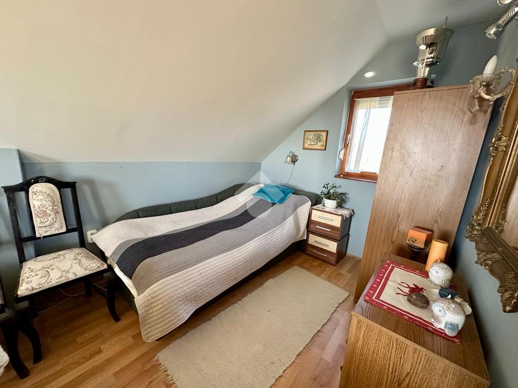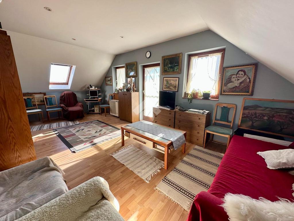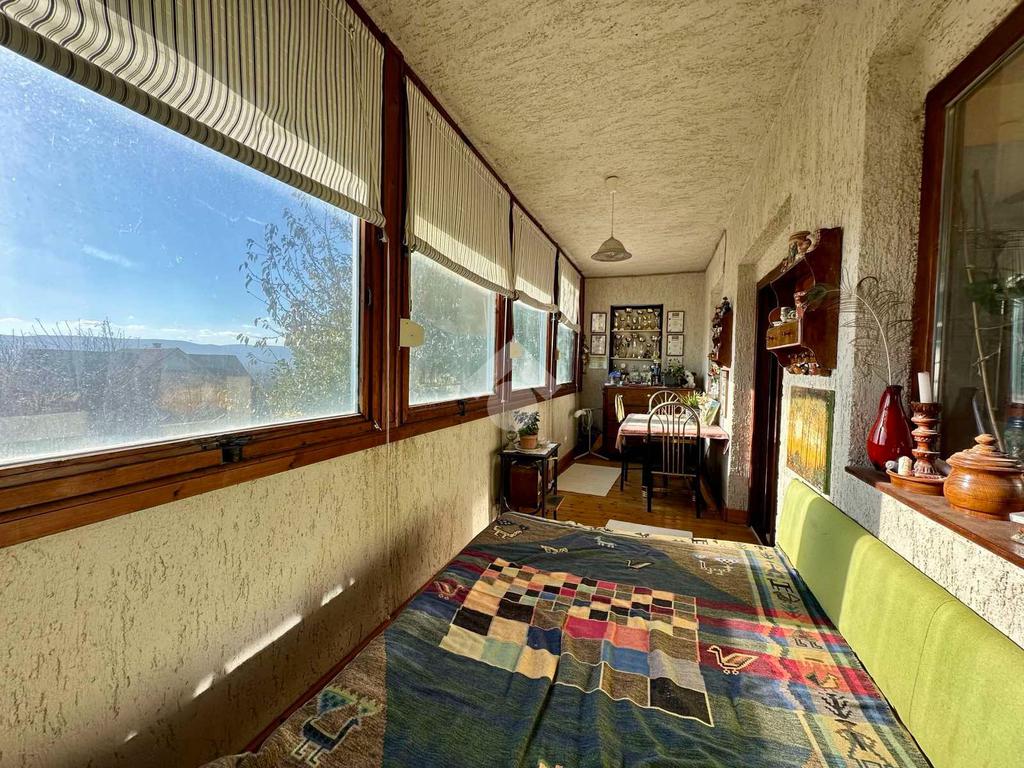 A felső szint egy hangulatos nappalit, egy hálószobát, fürdőszobát és egy erkélyt rejt, ahonnan lélegzetelállító panoráma nyílik a városra és a környező tájra. Délkeleti fekvése miatt a ház egész nap napfényben fürdik, így mindig világos és tágas tereket biztosít.