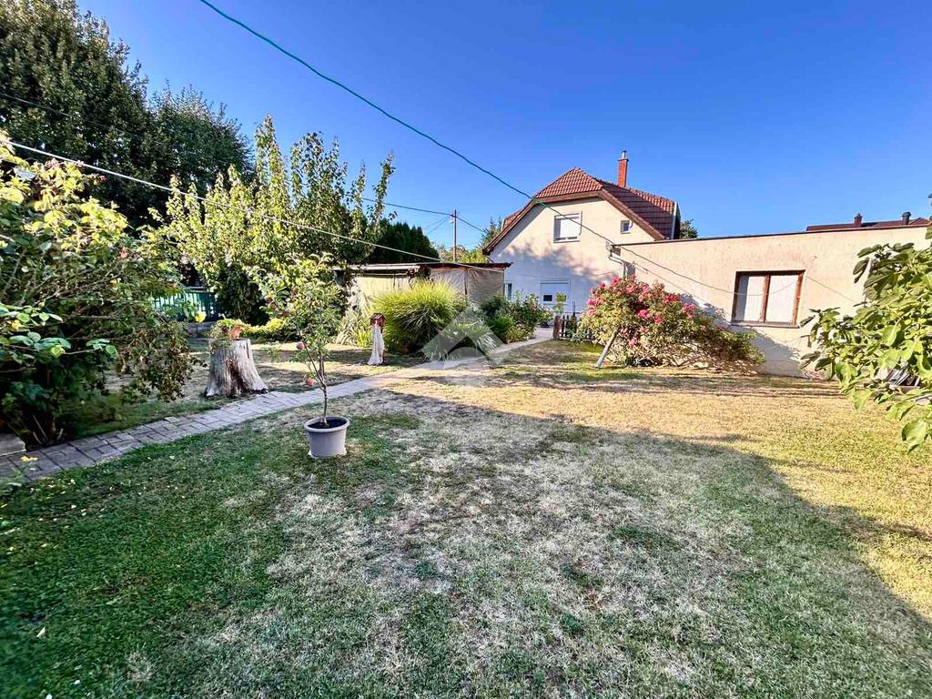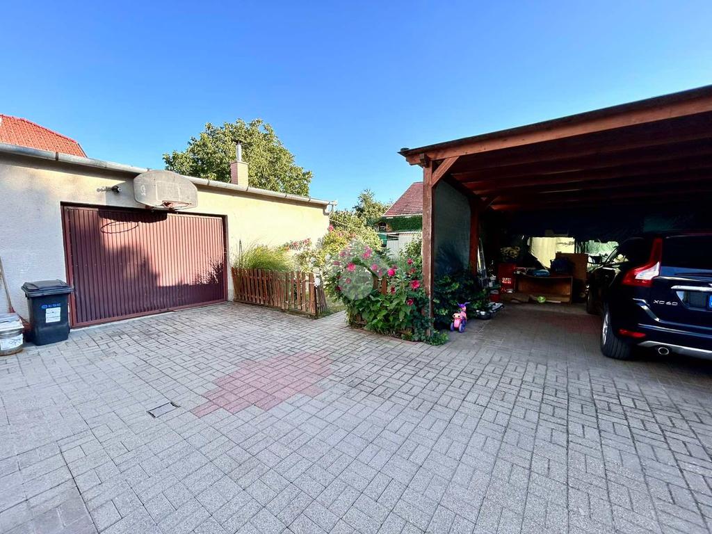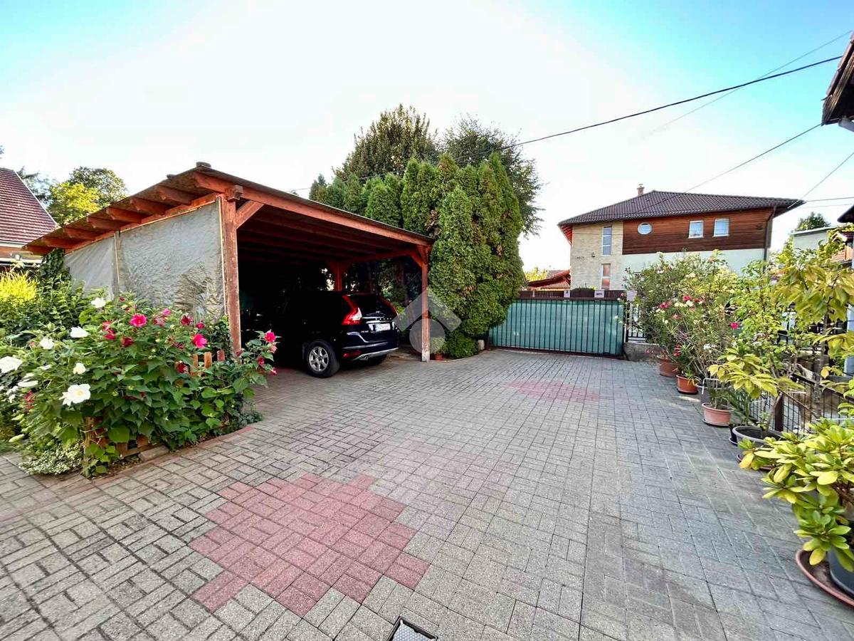 Az ingatlanhoz tartozik egy 48 négyzetméteres garázs, mely alatt egy szintén 48 négyzetméteres pince is helyet kapott – kiváló lehetőség tárolásra vagy akár műhely kialakítására. Az udvaron két férőhelyes fedett kocsibeálló biztosítja a kényelmes parkolást, a tágas kert pedig ideális lehet családi programokhoz, kerti sütögetéshez vagy akár egy saját veteményes kialakításához is.
