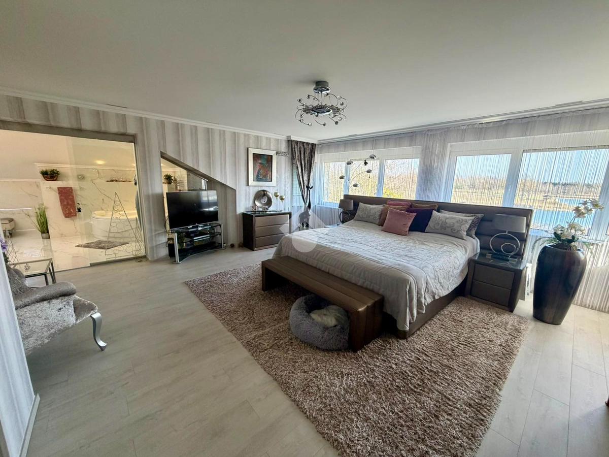 A felső szintekről gyönyörű, panorámás kilátás nyílik a közvetlenül a ház mellett elhelyezkedő tóra, ami igazán különleges hangulatot ad az otthonnak.