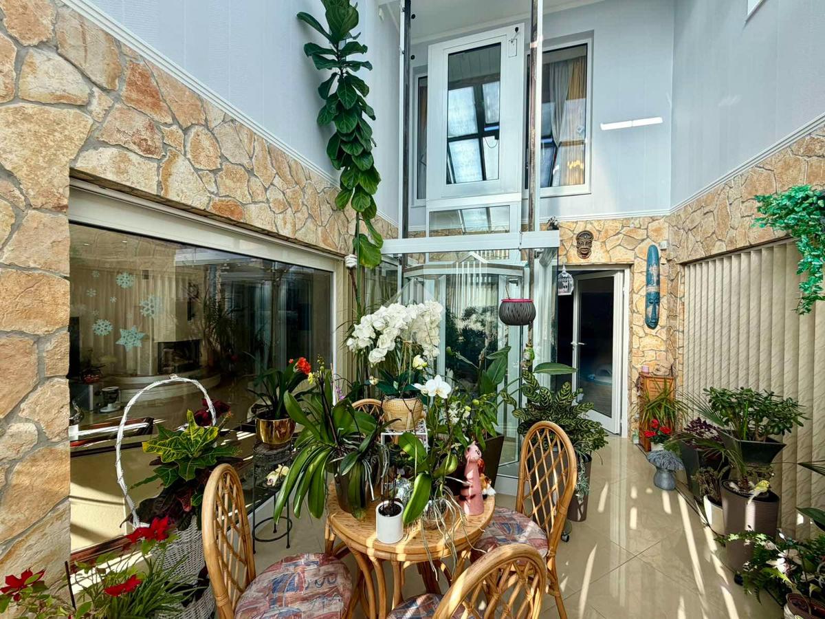 A 2004-ben épült ingatlan egy 2000 nm-es telken helyezkedik el, ahol a természet közelsége és a nyugodt környezet harmonikusan találkozik a modern lakóparki infrastruktúrával. A több szinten kialakított ház három teljes szinttel és két félemelettel rendelkezik, amelyek lépcsőn és liften keresztül egyaránt kényelmesen megközelíthetők.