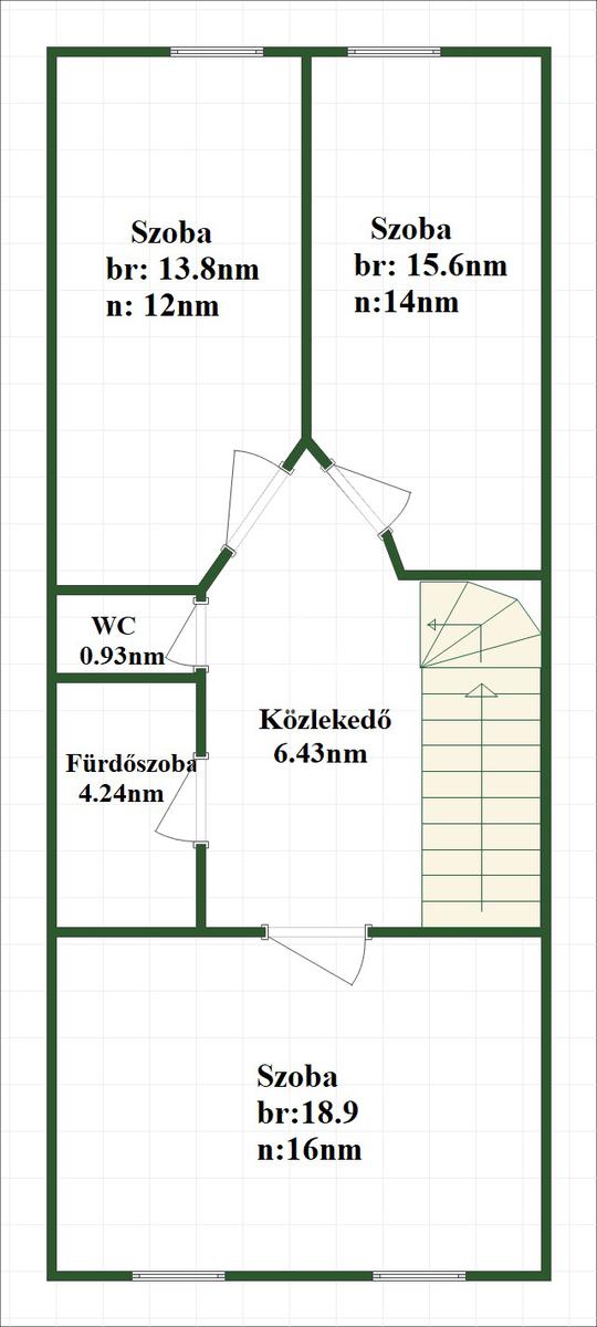 A földszinten található egy előszoba, tágas amerikai konyhás nappali, egy külön nyíló szoba, egy fürdőszoba WC-vel, valamint egy praktikus tárolóhelyiség is. Az emeleten három egymástól külön nyíló hálószoba található, továbbá egy fürdőszoba és egy külön WC szolgálja a lakók kényelmét.