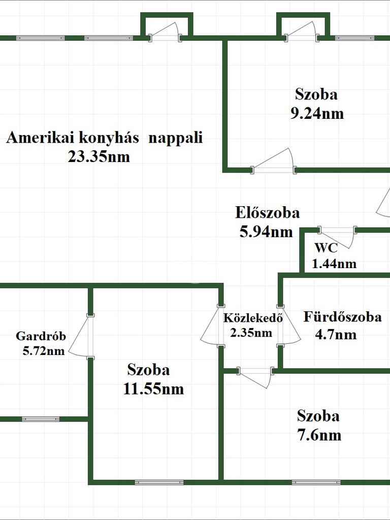Az ingatlan 3 szobából és egy amerikai konyhás nappaliból áll, továbbá egy kis előtér is tartozik hozzá. A nappalihoz és az egyik szobához franciaerkély, egy másik szobához pedig külön gardróbszoba kapcsolódik. A fürdőszoba és a WC külön helyiségben található, ami kényelmes megoldást biztosít a mindennapokban.
